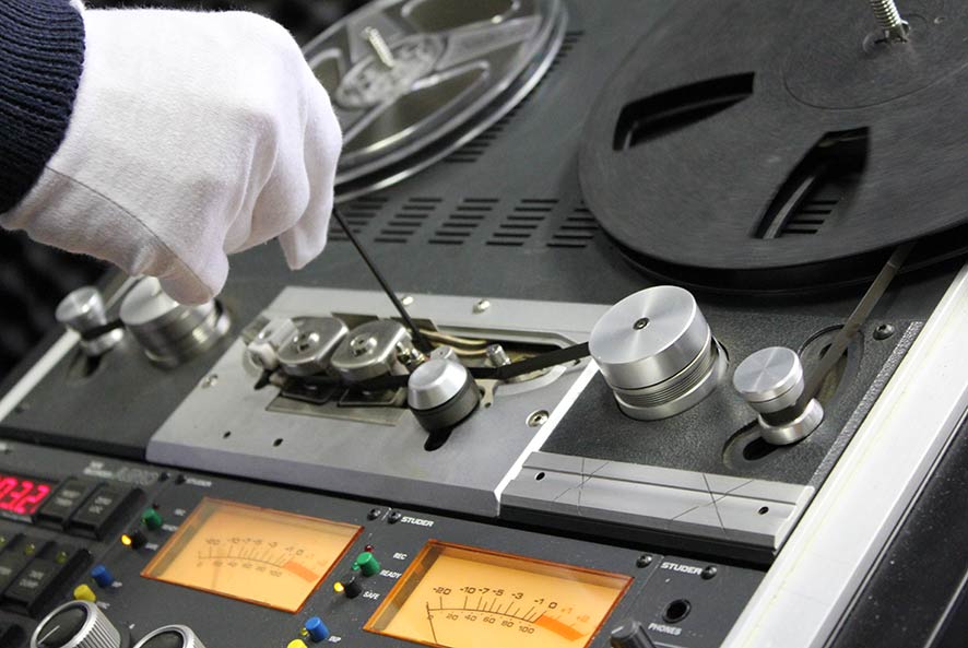 Our digitisation systems include professional tape decks and analogue-to-digital converters. All of our systems and workflows have been developed and are operated in line with the recommendations from the International Association of Sound and Audiovisual Archives’ TC-04 standard for audio preservation.